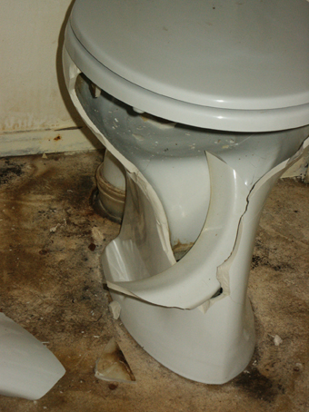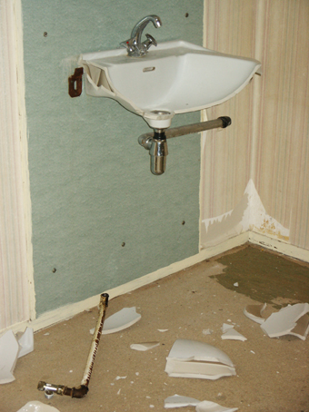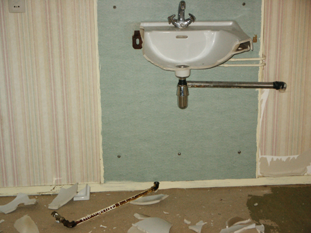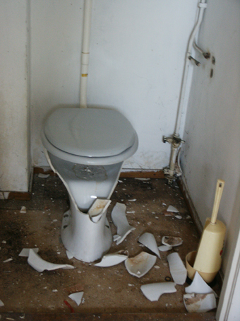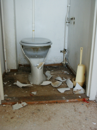 "Since the Berlageblokken action started many people moved into the empty apartments that are in very good condition. Ymere, the housing company that owns berlageblokken, broke every new empty apartment during the inspection when the old tenant moves out in order to prevent more new people moving into them. The following pictures are illustrating the damages caused by Ymere like breaking of toilet bowls and sinks, ripping the water taps apart, rupturing the electrical network..." Berlageblokken bewoner/resident |