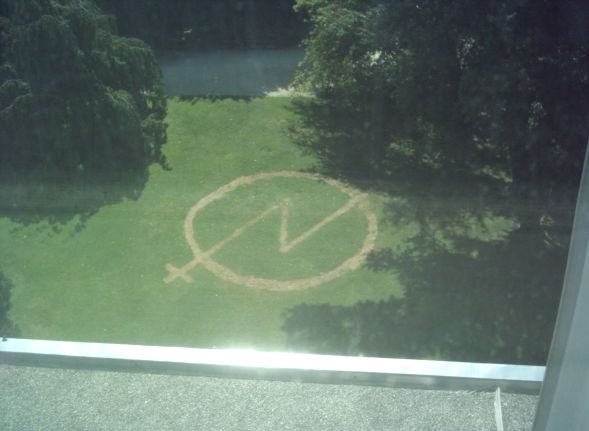Před radnicí v Grenoblu “vyrostl” teď v měsíci červenci veliký squatterský znak o průměru nějakých dvanácti metrů. Část nápisu (asi “Squaty Gre…”) byla cenzurována, ale znak sám je pořád dobře viditelný, obzvlášť tehdy, když se díváte přímo z budovy radnice..;)