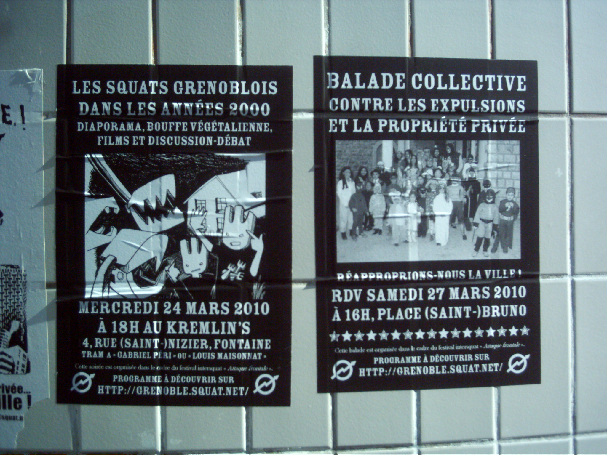 Po týdnu začal festival Intersquat, zahájil ho folkový bál na ulici u squatu Chez Paulette a Minitubes, pěkné bylo potom třeba odpoledne v La Pelletueuse, feministickém squatu. V La Pelletueuse se konalo veganské barbecue, se špízy a dobrotami, kterému předcházelo pečení veganských sladkostí. Den poté bylo ve squatu Kremlins – v obsazené bývalé továrně – diaporama, promítání fotek a několika dokumentů, k tomu vyprávění o různých squatech, které fungovaly v Grenoblu v posledních několika letech. Ukázalo se, že jich byly desítky a že je co vyprávět, příběhy i kolektivy byly velice různorodé, akce, které se v nich konaly, sousedské vztahy nebo třeba doba, po kterou squaty vydržely, to všechno se liší a z těchto faktů vyplynulo spoustu zajímavých otázek, z nichž některé se pak probíraly v následné diskuzi.