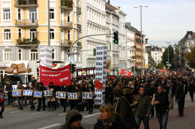 V sobotu 23. října demonstrovalo v Hamburku asi 6 000 lidí na podporu squattingu a proti ponechávání budov nevyužitými, přišlo dvakrát více lidí, než se očekávalo.