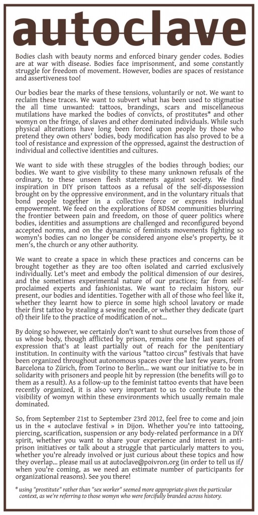 AUTOCLAVE . DIY tatoo festival benefit pro vězně, squat Tenneries, Dijon france