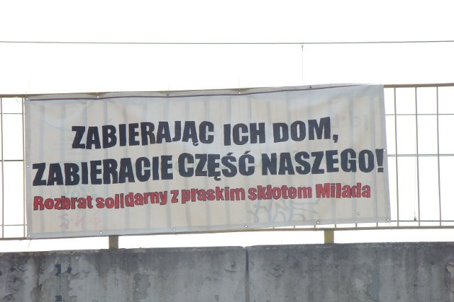 1. júla prišlo na námestie SNP v Bratislave približne 40-50 ľudí vyjadriť svoj nesúhlas s násilným vysťahovaním sociálno-kultúrneho centra Milada v Prahe a vyjadriť solidaritu s jeho obyvateľmi. Na námestí sa rozdávali letáky informujúce o problematike squatingu a súčasnej situácii okolo squatu Milada.