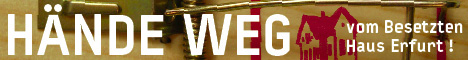 Auf dieser Webseite wird es nur noch selten Aktualisierungen geben. Aktuelle Informationen zum Kampf um ein selbstverwaltetes Zentrum in Erfurt findet ihr unter www.haendehoch.blogsport.de.