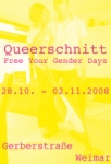 Zum zweiten mal finden vom 28.10. bis zum 02.11. die "Queerschnitt - Free Your Gender Days" in der Gerberstraße in Weimar statt. Diesmal möchten wir in Form einer (queer-)feministischen Veranstaltungsreihe in den linken Alltag intervenieren, jungen und alten Menschen einen Zugang zu feministischer Kritik vermitteln und eine Diskussion über Geschlechter-Verhältnisse anzetteln.