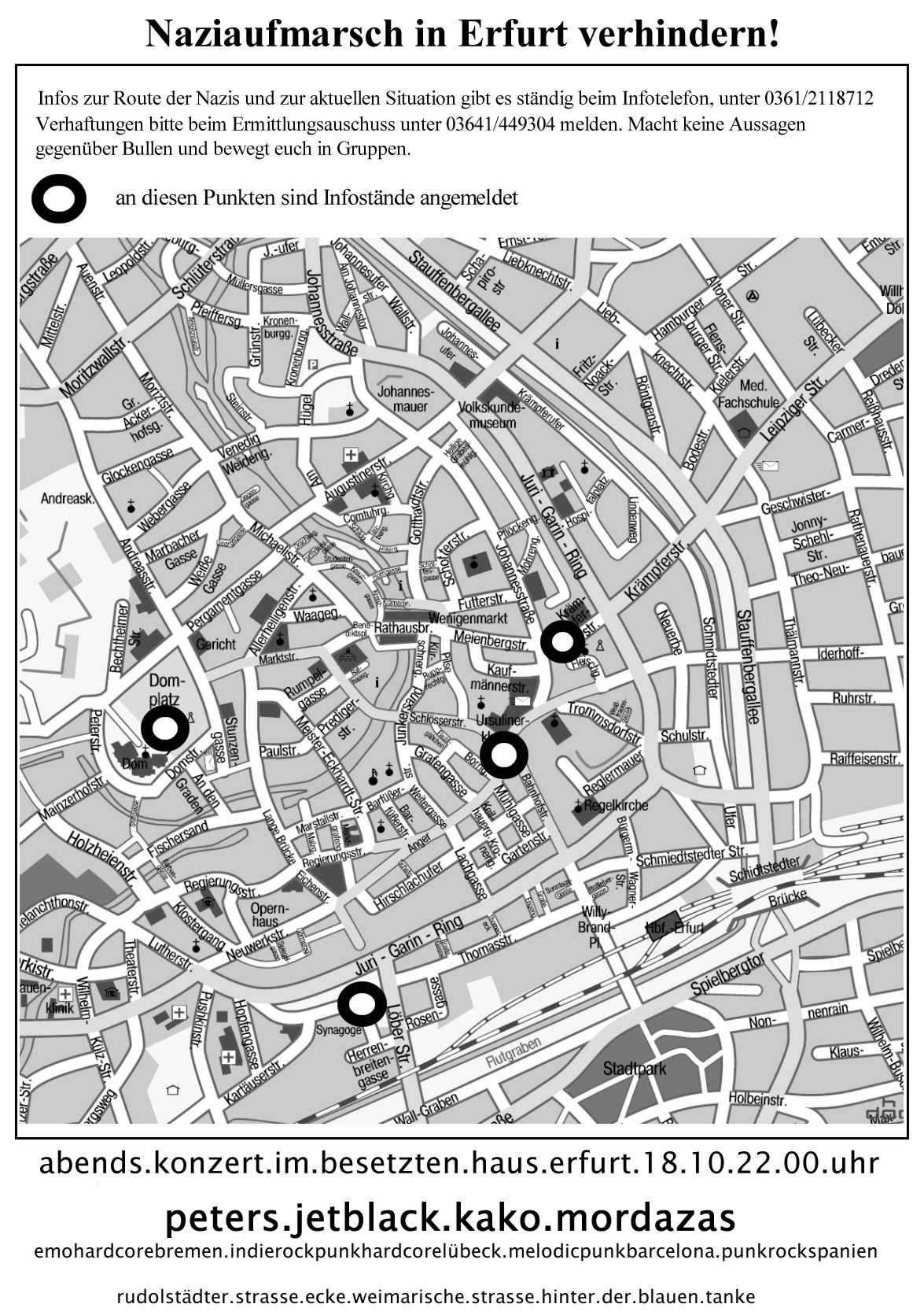 die Nummer des Infotelefons ist : 0361/2118712 , bitte ruft holt euch dort am samstag die aktuellen Infos