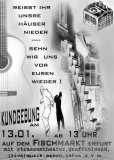 Am Mittwoch, dem 9.7. fand unter dem Motto "Besetztes Haus bleibt wie das besetzte Haus ist!" eine Kundgebung auf dem Erfurter Fischmarkt statt. Dabei wurde der Erhalt des besetzten Hauses auf dem ehemaligen Topf & Söhne-Gelände gefordert. Nachdem das Gelände verkauft wurde, sieht der Entwurf eines neuen Bebauungsplans einen Lebensmittelmarkt an der Stelle des besetzten Hauses vor - damit ist der Weiterbestand des Projekts gefährdet.