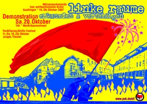 Für Samstag, den 22.11. wurde unter dem Motto "Hände weg vom Besetzten Haus in Erfurt" angemeldet. Treffpunkt ist um 13.00 Uhr auf dem Erfurter Bahnhofsvorplatz, um 14.00 Uhr soll die Demo starten. Aufruf, Poster, Banner und Materialien gibt es in den nächsten Tagen hier und auf dem Demo-Blog unter haendeweg.blogsport.de.