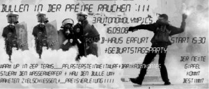 Die Veranstaltung findet am 21.10.2008 um 20.00 Uhr im Infoladen Sabotnik im besetzten Haus Erfurt statt.