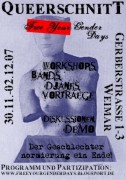 Der Wortkshop der Gruppe GAP (Gruppe antisexistische Praxis Berlin) "Strategien gegen Sexismus und Sexuelle/sexualisierte Gewalt" findet am 26.4.2008 ab 14.00 Uhr im besetzten Haus statt und wird für Freund_innen der Besetzer_innen organisiert.